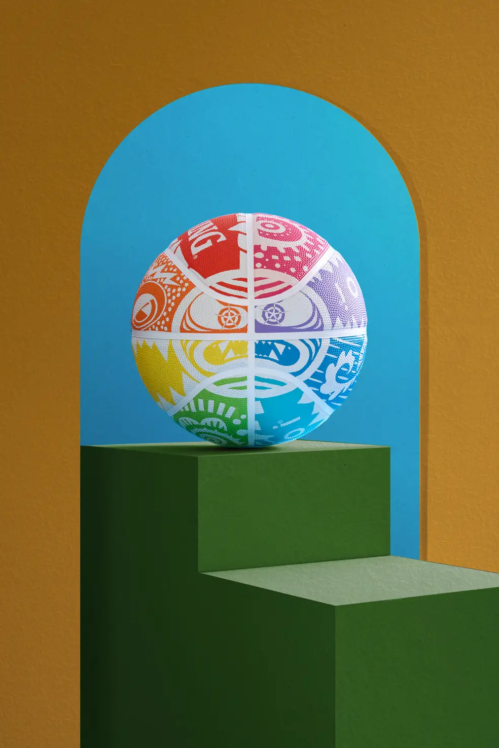 The Monster Basketball is made in collaboration with Spalding. Designed for indoor exhibition and suitable for any basketball court